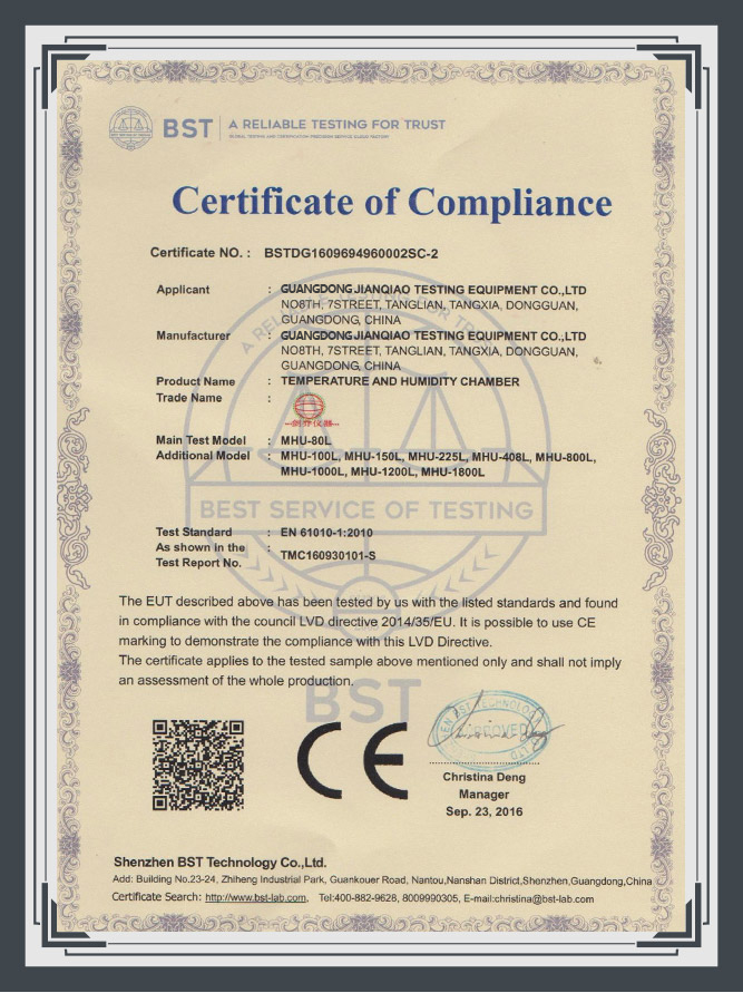 您好!歡迎光臨廣東劍喬試驗設備有限公司,主營產品:恒溫恒濕試驗箱、可程式恒溫恒濕機、冷熱沖擊試驗箱、三綜合試驗箱、電動振動臺、振動試驗機。