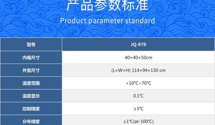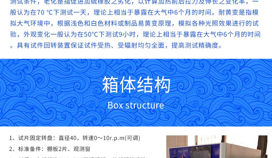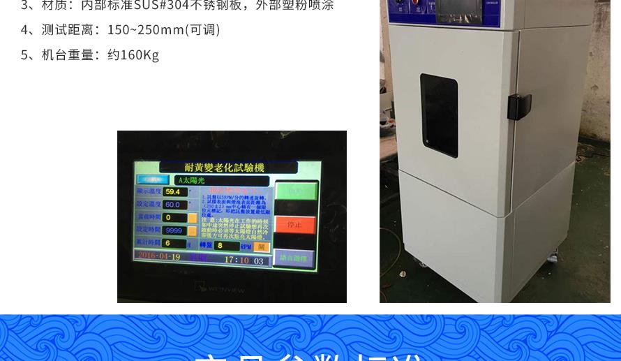 產品型號:JQ-876 品牌:劍 喬 用途:耐黃變老化試驗箱適用于仿真陽光的紫外線輻射及熱度,設備滿足老化與耐黃變2種測試條件,老化是指促進加硫橡膠之劣化